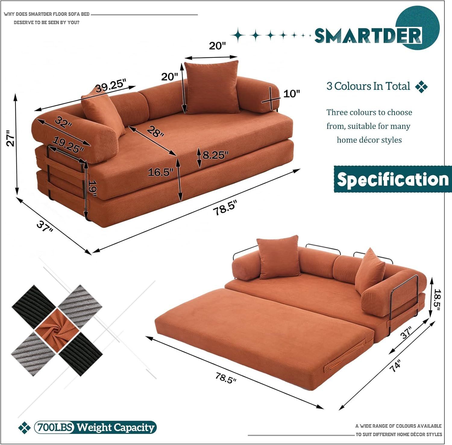 Sleeper Size: 78.5″L x 74″W x8.25″H